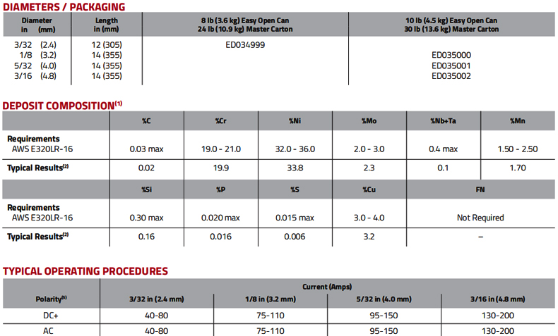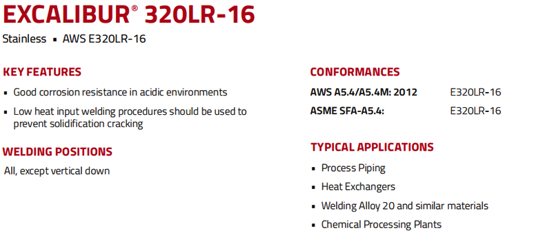 LINCOLN林肯EXCALIBUR® E320LR-16不锈钢焊条,直径4.0mm,4.54公斤/包 |