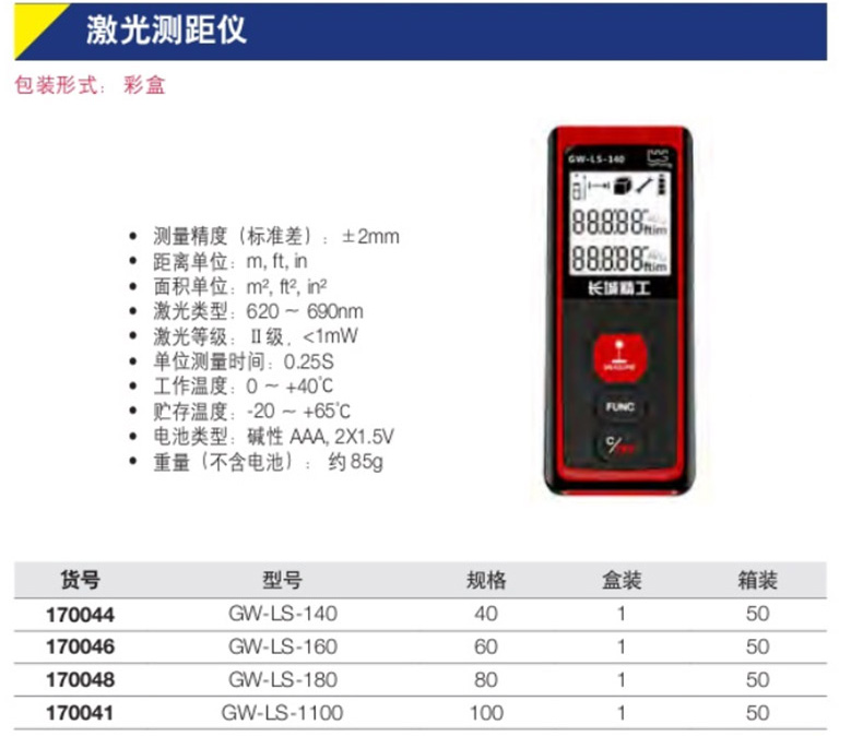 艾逊订货号:D1028725 原始型号:长城精工Greatwall 激光测距仪,GW-LS-180,170048 品牌:SATA/世达 品牌所属地: