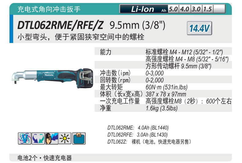 麦太保锂电(无刷)冲击扳手,1/2寸夹头,400Nm 单机,SSW18LTX400BL,不含电源和充电器,602205890 |