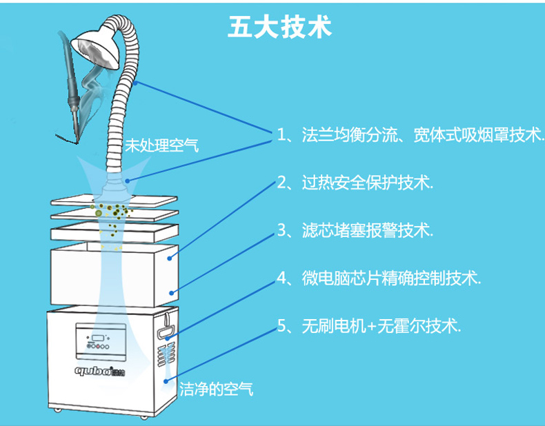 QUBO/酷柏的焊接烟尘净化设备酷柏低噪音,高容量,高效新型锡烟净化器,DX2000单吸气臂