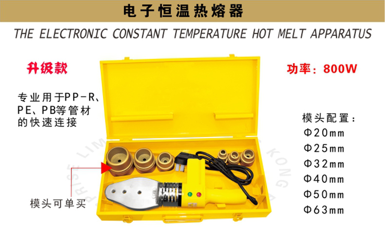 艾逊订货号:D1032512 原始型号:波斯 电子恒温热熔器800W(20-63mm),BS530836 品牌:BOSI/波斯 品牌所属地: