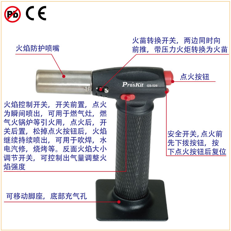 Proskit/宝工的PPR热熔器宝工Pro'sKit瓦斯喷火枪自动点火带安全开关瓦斯喷灯,GS-520