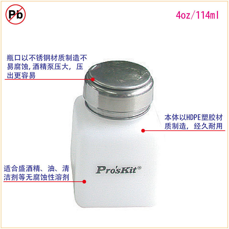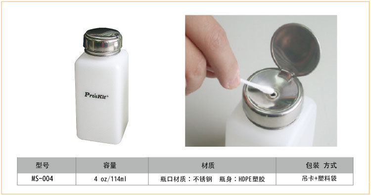 AIXUN艾逊提供Proskit/宝工的防静电酒精瓶宝工Pro'skit酒精瓶,4oz/114ml,MS-004