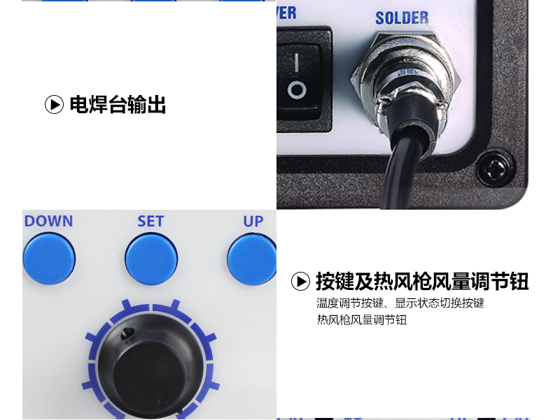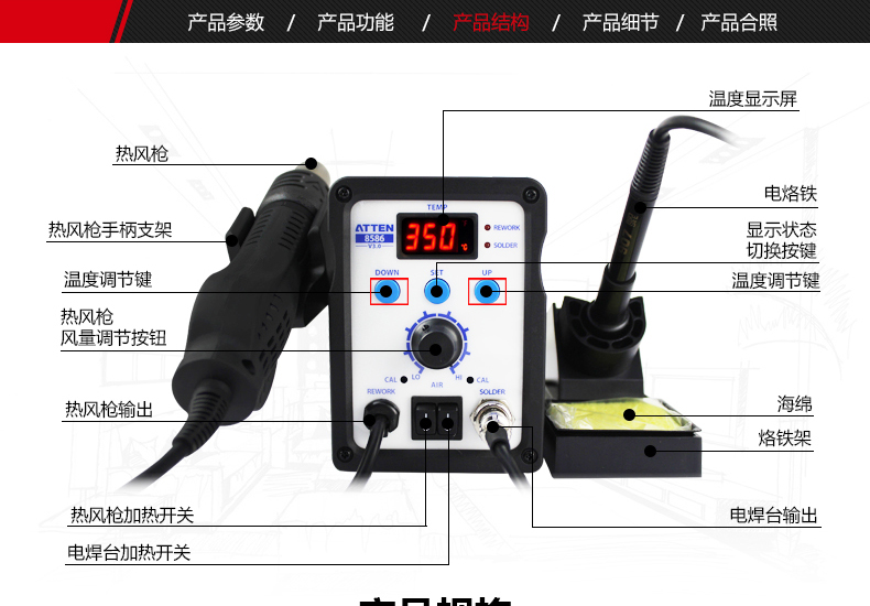 艾逊订货号:D1036960 原始型号:安泰信焊台热风台-风枪烙铁二合一,AT8586 品牌:ATTEN/安泰信 品牌所属地:中国