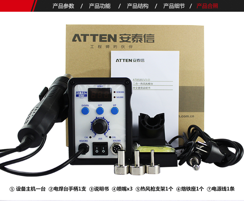 ATTEN/安泰信的热风拆焊台安泰信焊台热风台-风枪烙铁二合一,AT8586