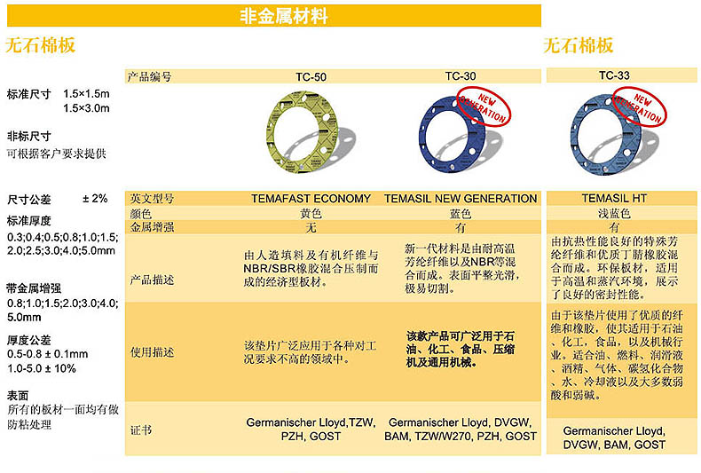 HG/T20606 高温高压芳纶纤维无石棉垫片TC-33 RF DN300 PN16 T=3mm ,10片/包 |
