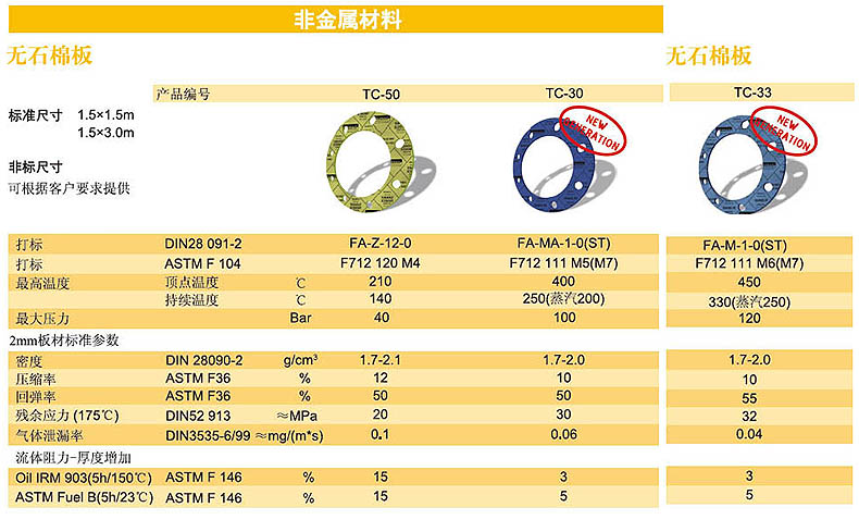 HG/T20606 高温高压芳纶纤维无石棉垫片TC-33 RF DN40 PN40 T=3mm ,10片/包 |