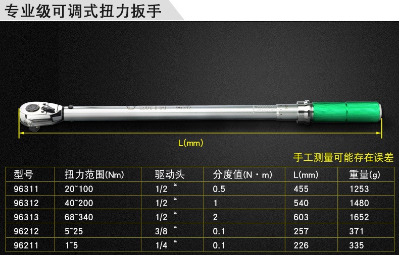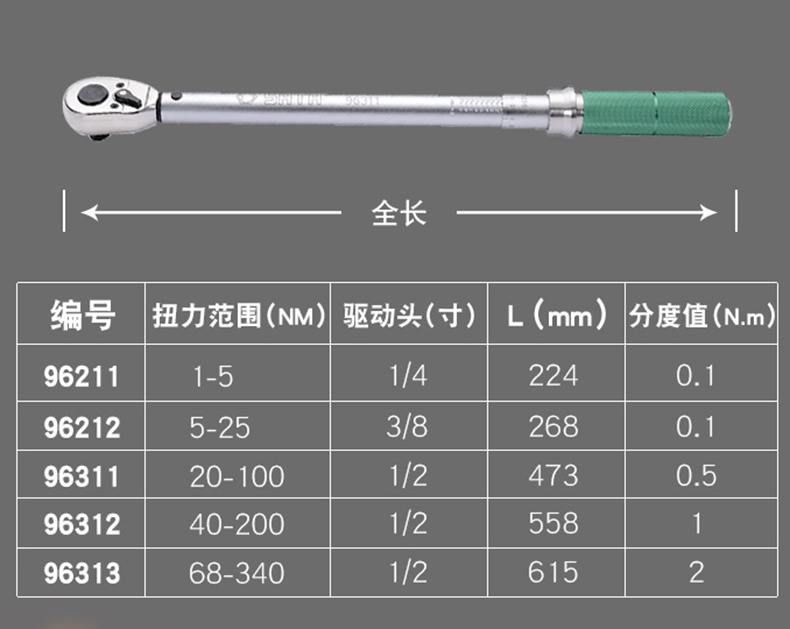 SATA/世达的扭力扳手世达扭力扳手,10MM系列专业级可调式5-25Nm,96212
