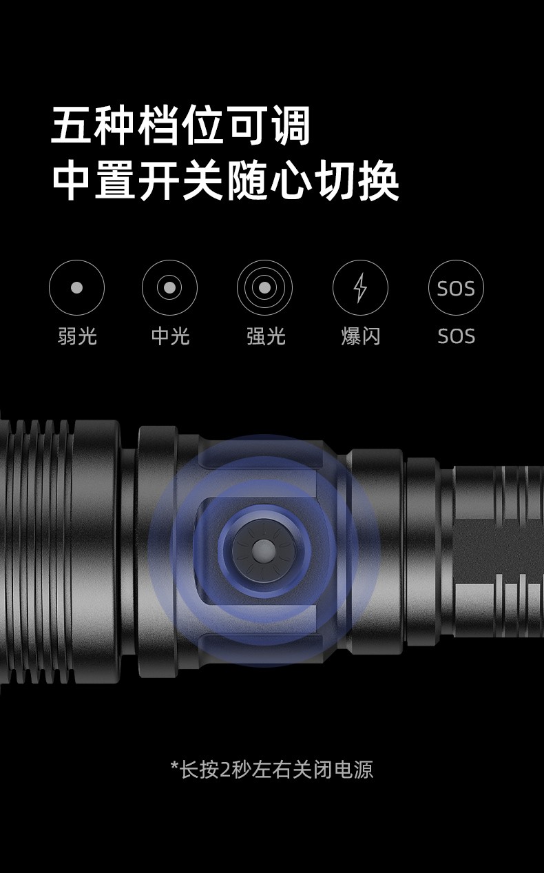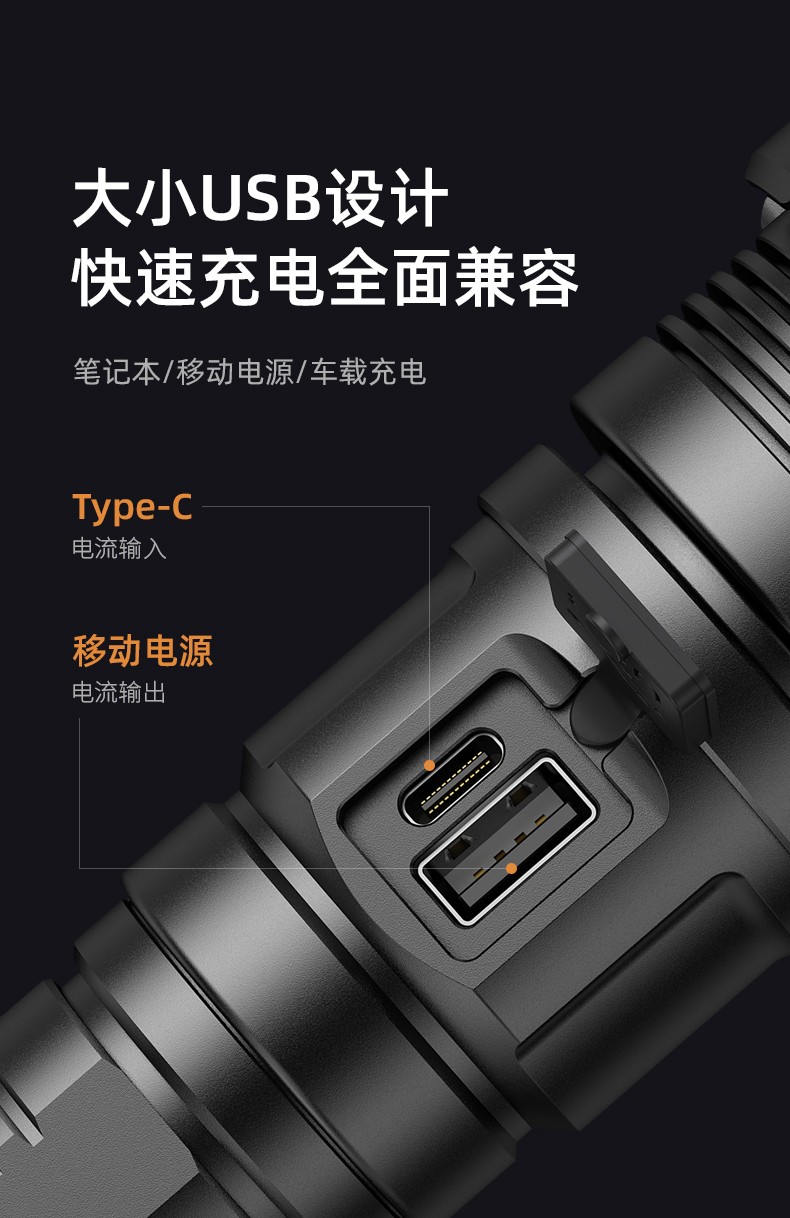 神火 L1 手电筒,5核高亮 含4个18650锂电池 含USB接口的充电器,单位:个 |