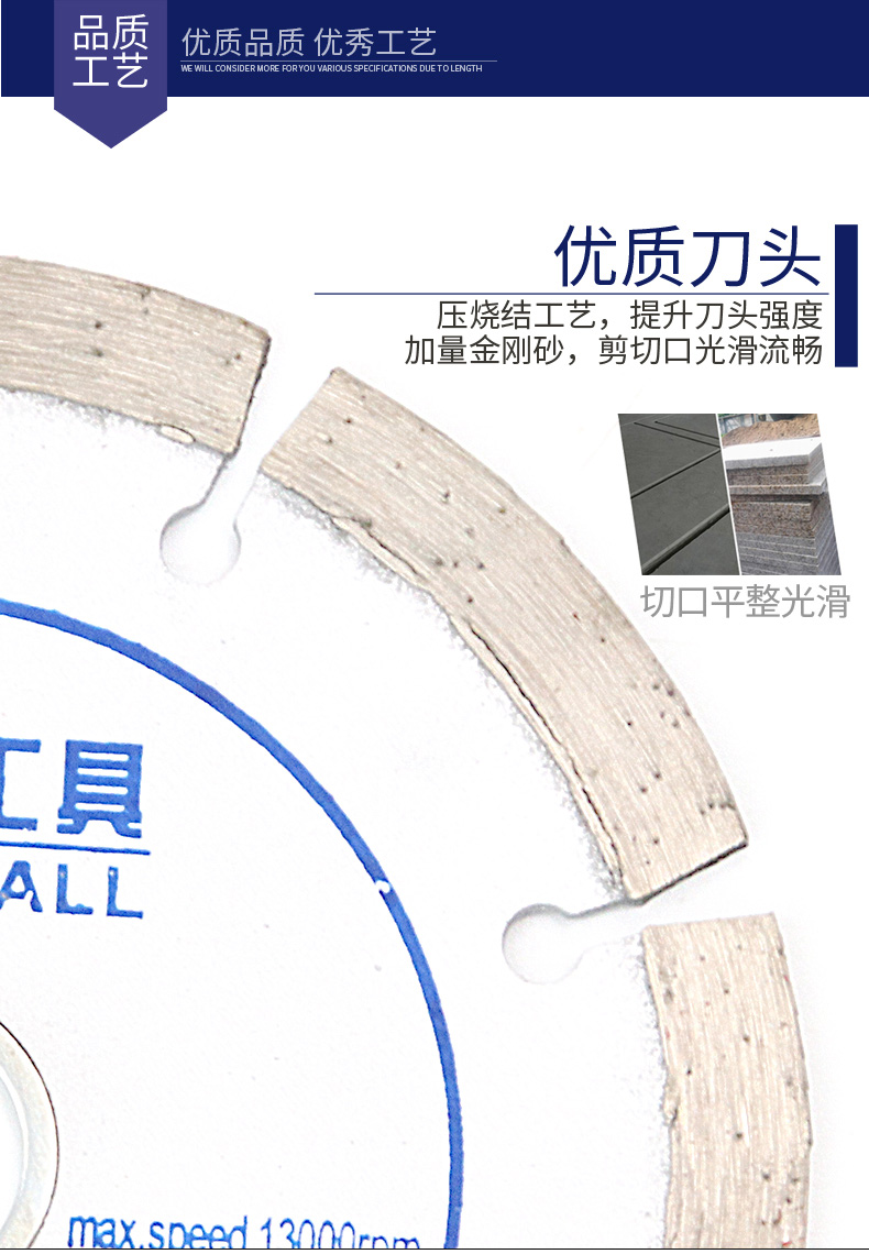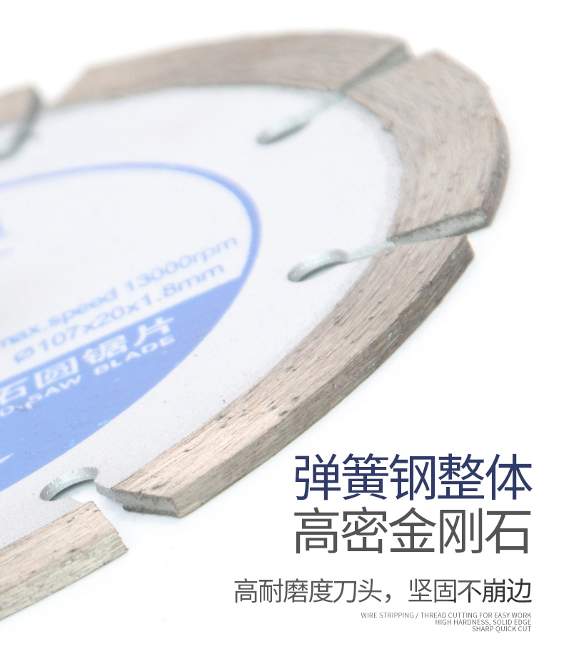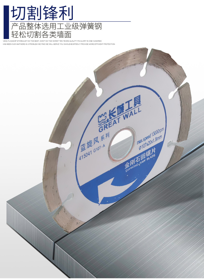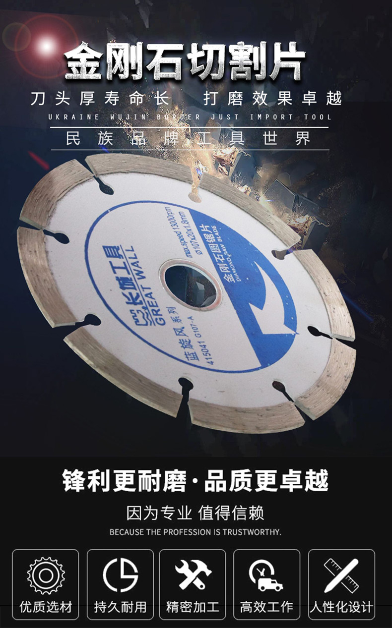 艾逊订货号:D1039261 原始型号:长城精工Greatwall 金刚石圆锯片,?110x20x1.8mm,415042 品牌:长城精工 品牌所属地:中国