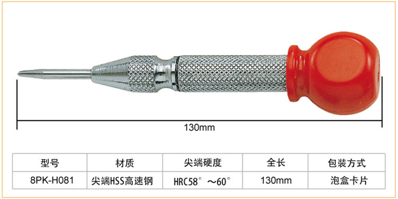 艾逊订货号:D1039336 原始型号:宝工 Pro'skit半自动红头中心冲,8PK-H081 品牌:Proskit/宝工 品牌所属地: