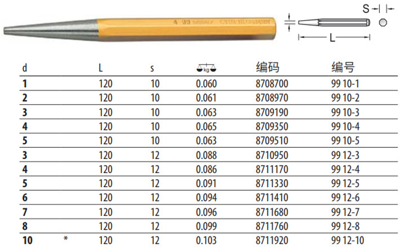 GEDORE/吉多瑞的冲吉多瑞锥形冲子,120x10x4mm,8709350