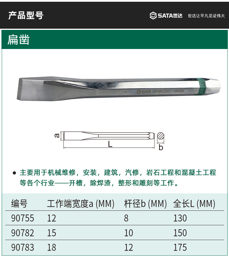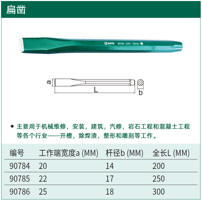 SATA/世达的凿世达扁凿,20×200mm,90784