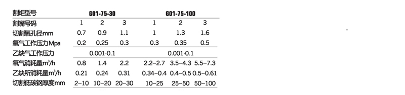 日出75款焊割炬,G01-75-100,适用气体:氧气、乙炔,切割能力10-100mm,标配割嘴型号M1/M2/M3 |