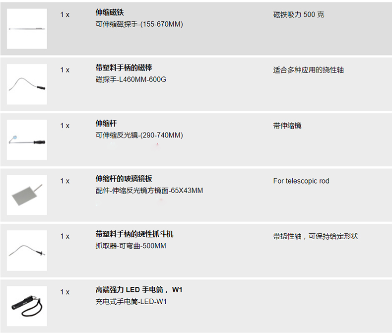 艾逊订货号:D1040419 原始型号:伍尔特 捡物检测工具组套,6件套,071535 900 品牌:WURTH/伍尔特 品牌所属地: