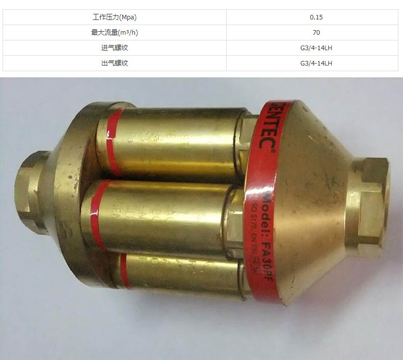 艾逊订货号:D1040665 原始型号:捷锐气体回火防止器,FA30PF,管道用,燃气,3/4NPT(F) 品牌:GENTEC/捷锐 品牌所属地:中国