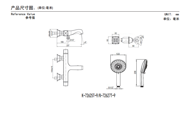 科勒 玛尔戈挂墙式花洒龙头(原K-16297T-9-CP),K-72628T-9-CP |