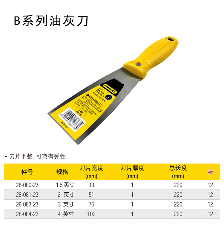 STANLEY/史丹利的泥刀.油灰刀.平抹子史丹利B系列油灰刀102mm/4",28-084(S)-23