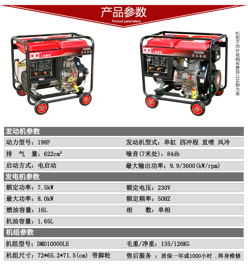 上海东明 开架式单相柴油发电机组,10kW,DMD12000LE,电启动,含电瓶 |