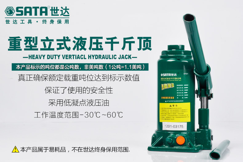 SATA/世达的千斤顶世达立式液压千斤顶,32吨,最低高度275mm最高高度440mm,97809A
