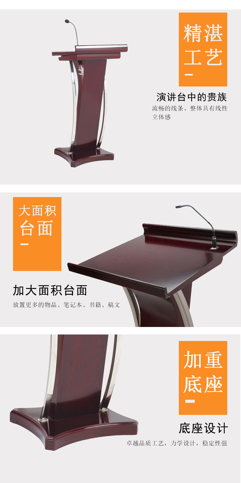 邦洁的演讲台顺南咖啡色演讲台,YT-16木结构(带麦克风)