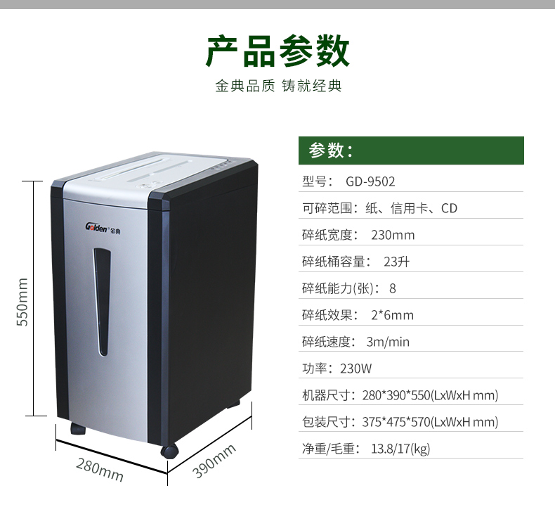 Golden/金典的碎纸机金典办公型碎纸机,GD-9502