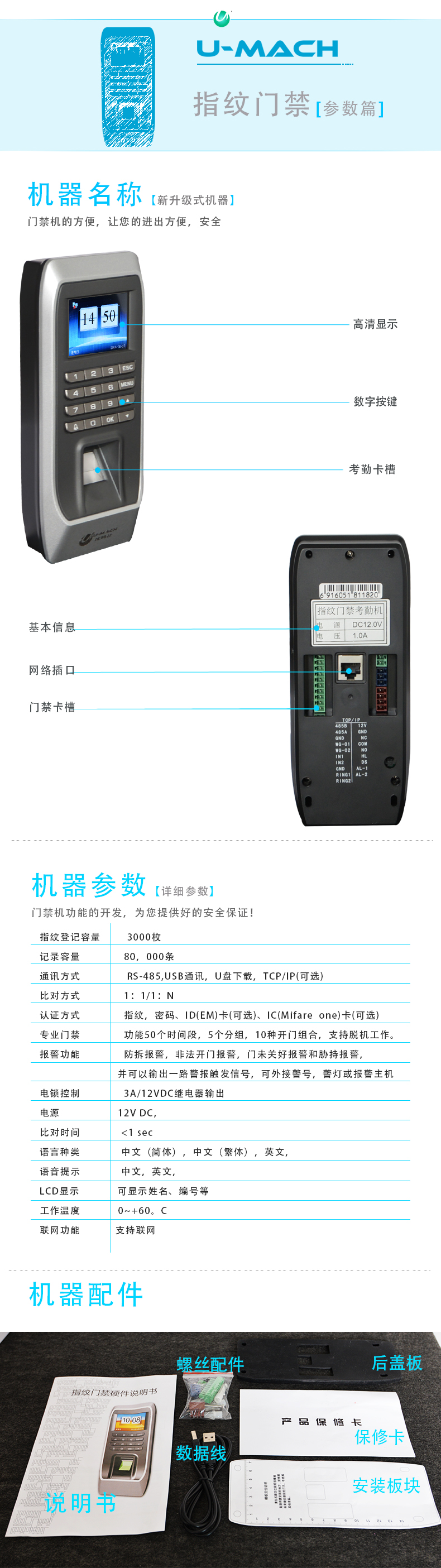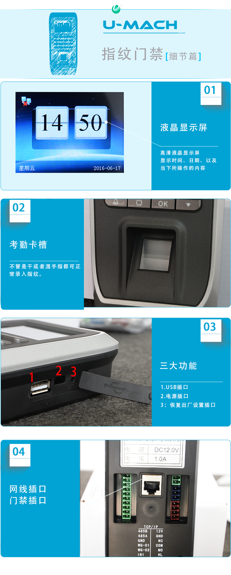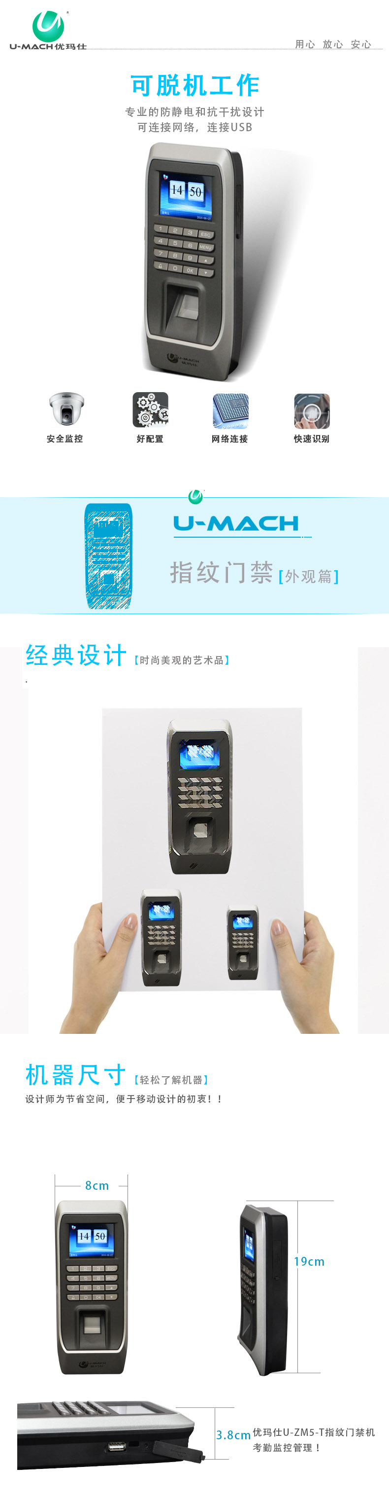 U-MACH/优玛仕的门禁机优玛仕U-ZM5-T指纹网络U盘门禁考勤机