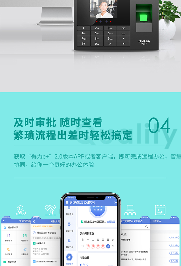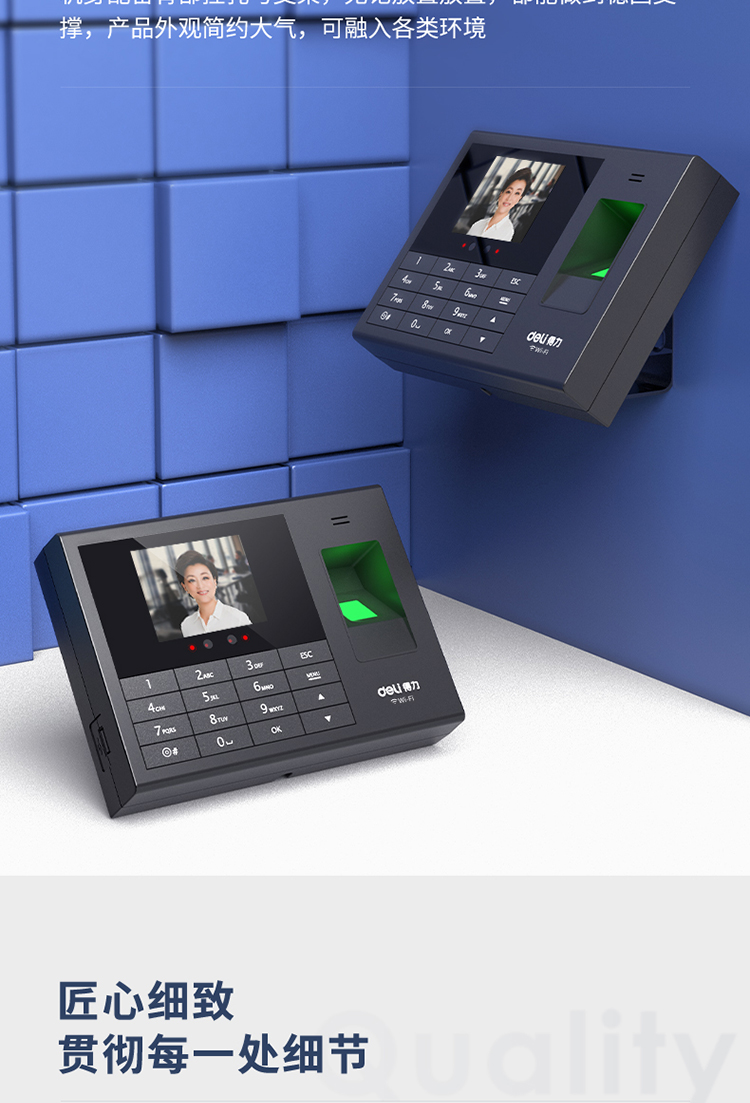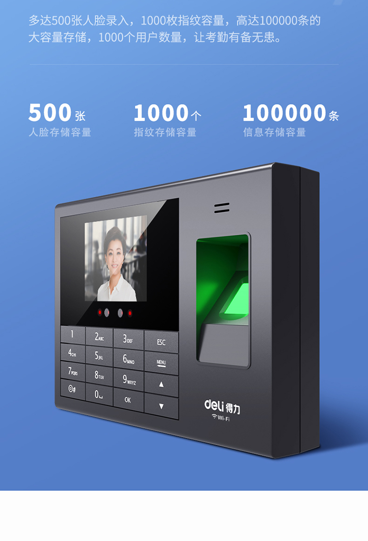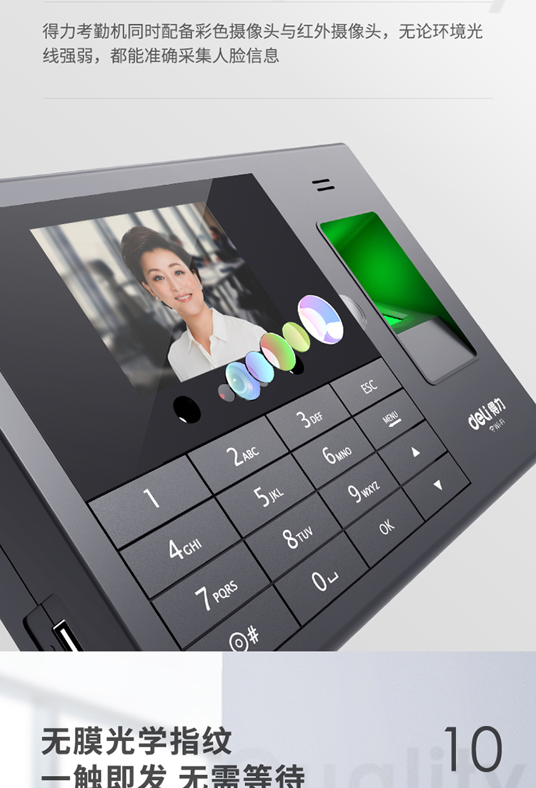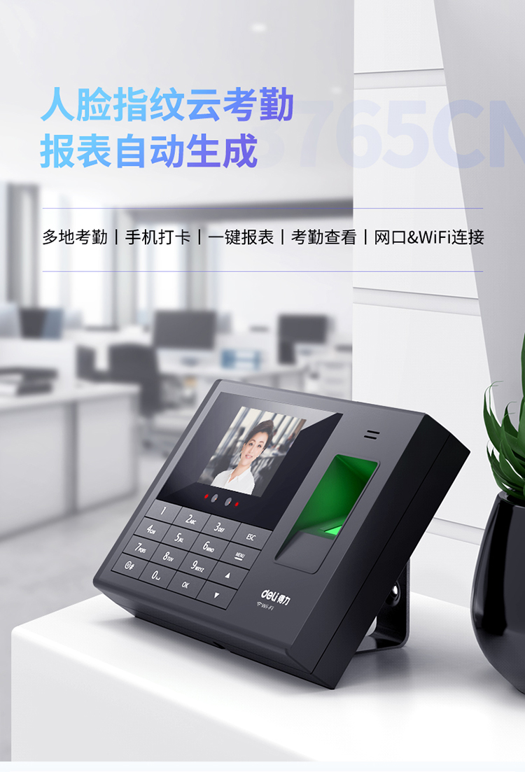 deli/得力的门禁机得力考勤机,3765人脸指纹考勤机(黑色)