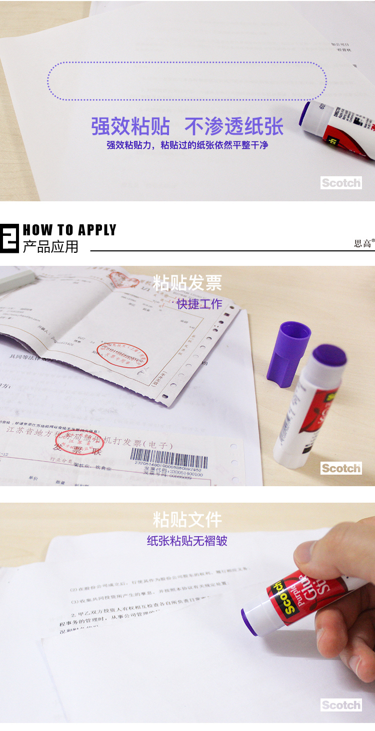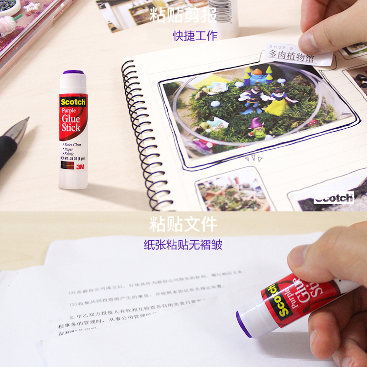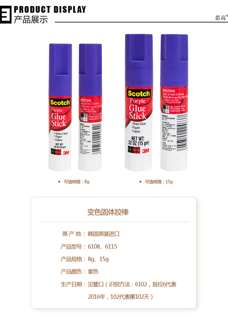 3M的胶带胶水3MScotch®胶棒,6108思高紫色固体胶棒PVP,规格8G,单位:个