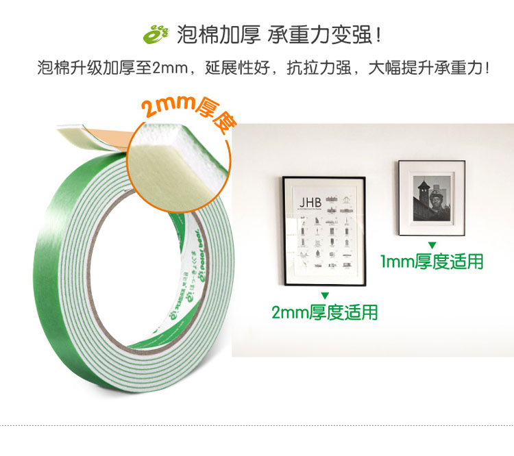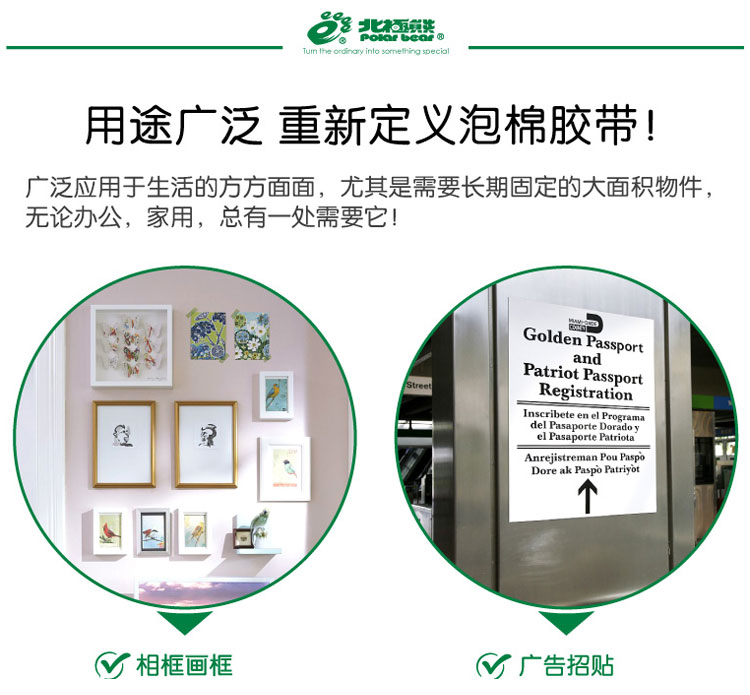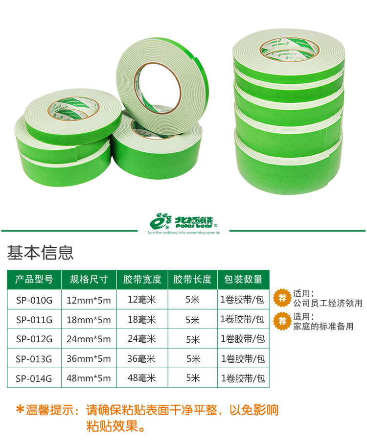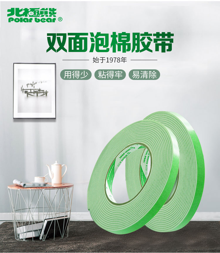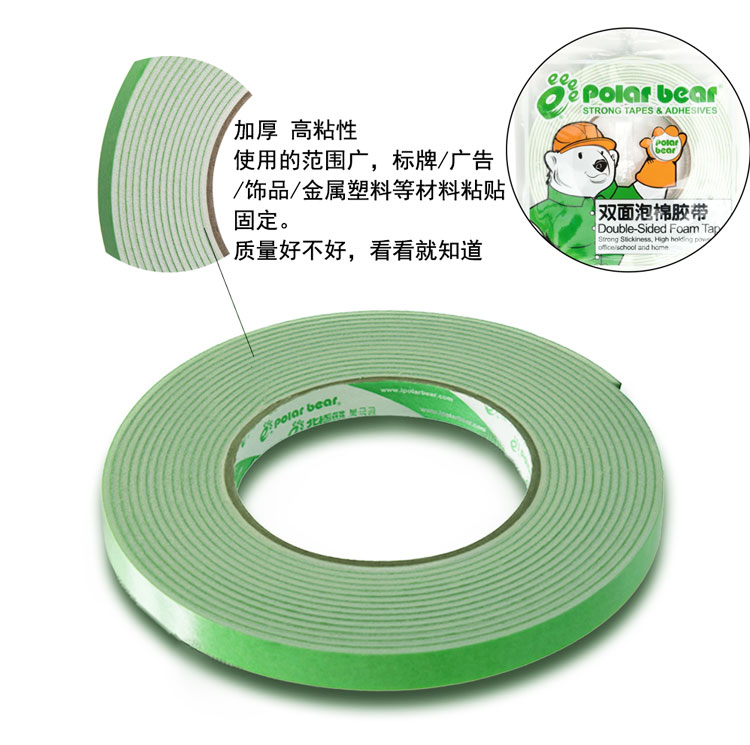 POLAR BEAR/北极熊的胶带胶水北极熊泡棉胶带,24MM*5M,SP-012绿色粘性强适合挂重物单卷