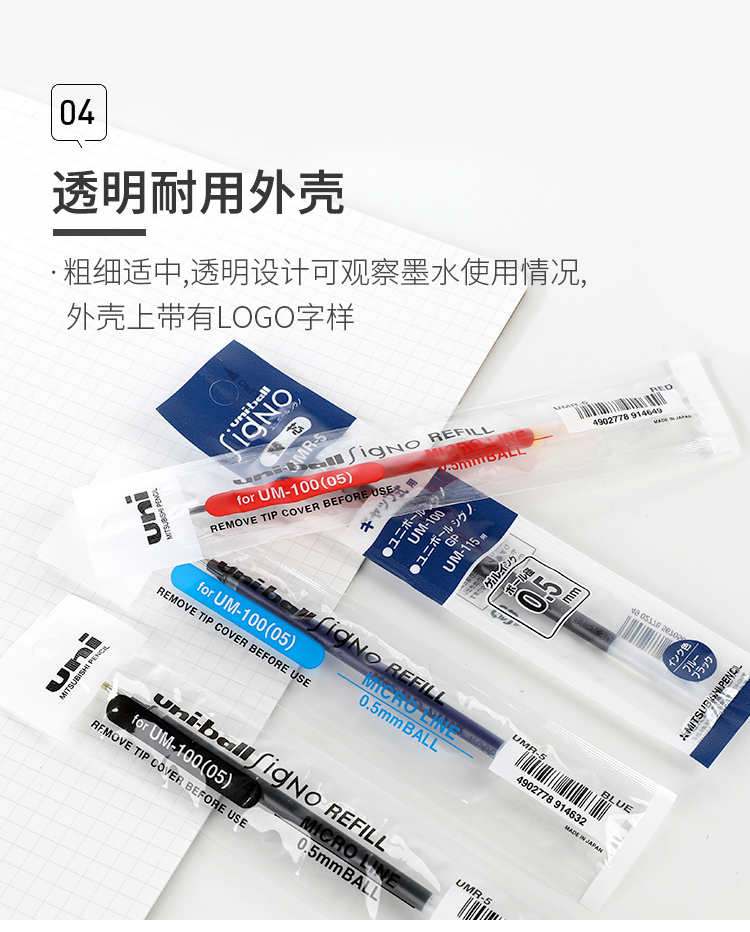 三菱 uni 中性笔芯, UMR-5 0.5mm (红色)单支 |