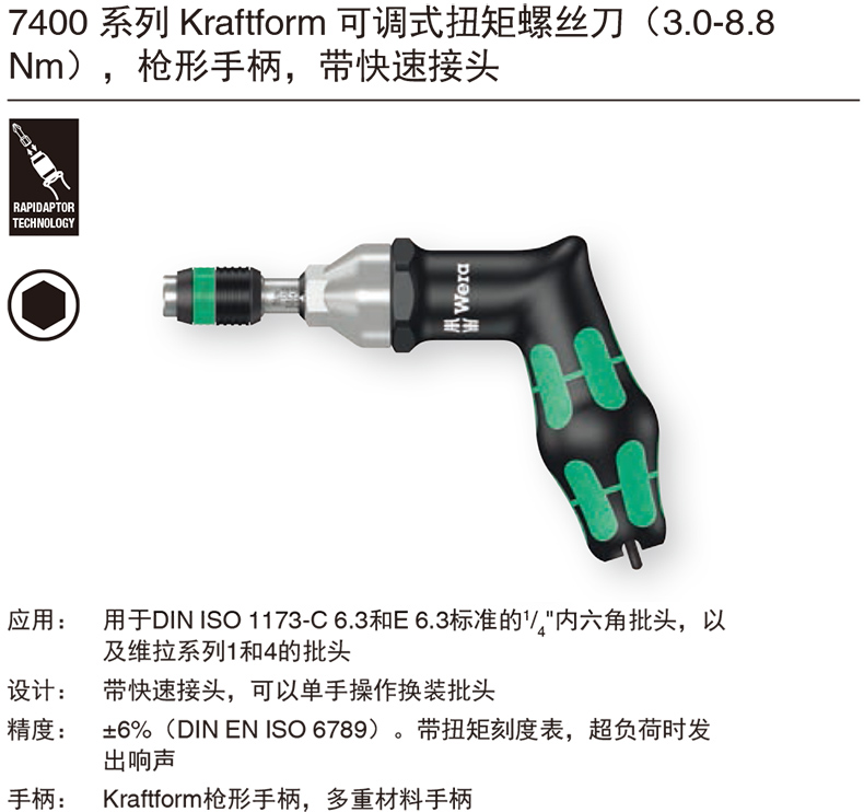 Wera/维拉的扭力螺丝刀.扭力起子机wera维拉扭力螺丝刀,4.0-8.0Nm精度±6%,05074705001