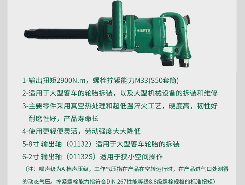 艾逊订货号:D1041966 原始型号:世达轻型大扭力气动冲击扳手,01132 品牌:SATA/世达 品牌所属地:中国