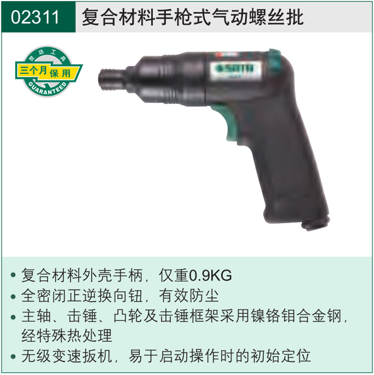 SATA/世达的气动螺丝刀世达SATA复合材料手枪式气动螺丝批,1/4"六角,02311