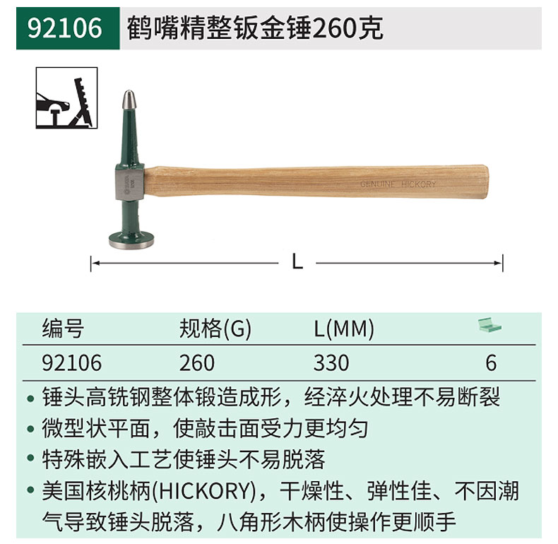 SATA/世达的钣金工具套装世达钣金锤,305g用于曲面精整,92103