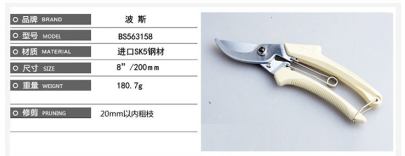 波斯BOSI 不锈钢树枝剪,8"/200mm,BS539088 |
