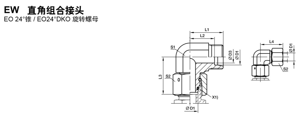 Parker/派克的液压接头派克Parker直角组合接头,EW38SOMD71,不锈钢