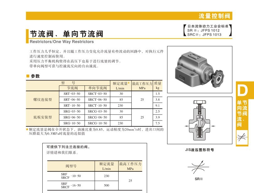 Yuci/榆次的节流阀榆次油研节流阀,额定流量85L/min,板式连接,SRG-06-50
