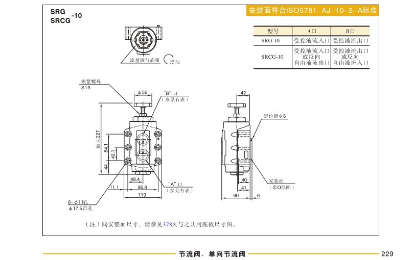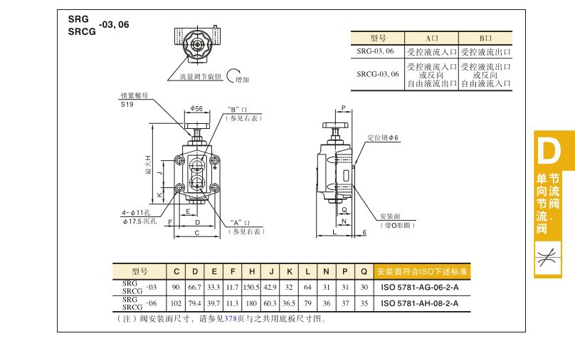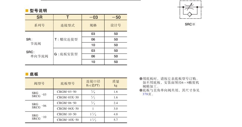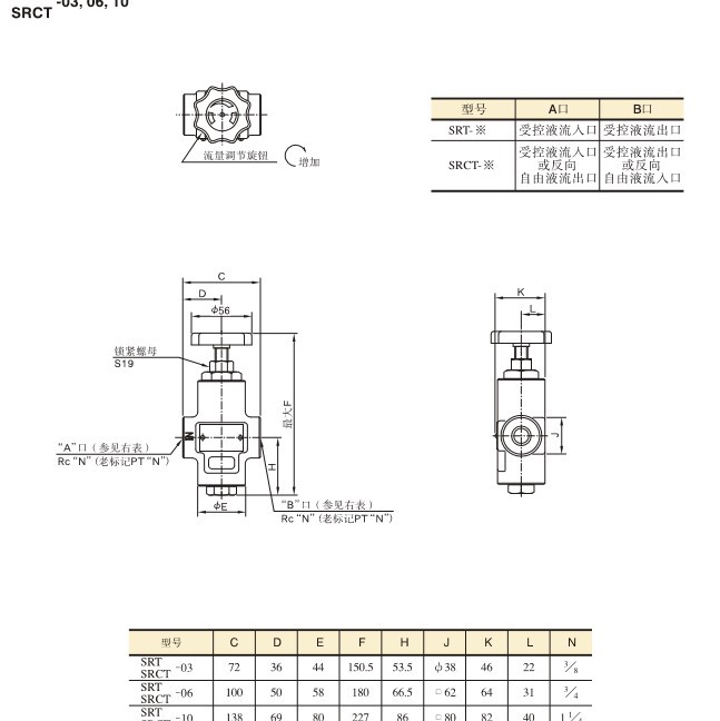 艾逊订货号:B1074836 原始型号:榆次油研 节流阀,额定流量85L/min,板式连接,SRG-06-50 品牌:Yuci/榆次 品牌所属地:中国