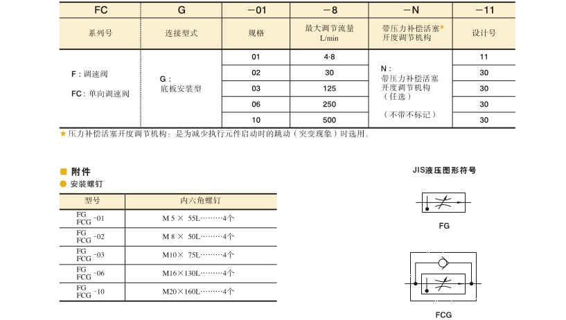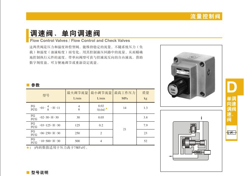 Yuci/榆次的调速阀榆次油研单向调速阀,最大调节流量8L/min,FCG-01-8-N-11