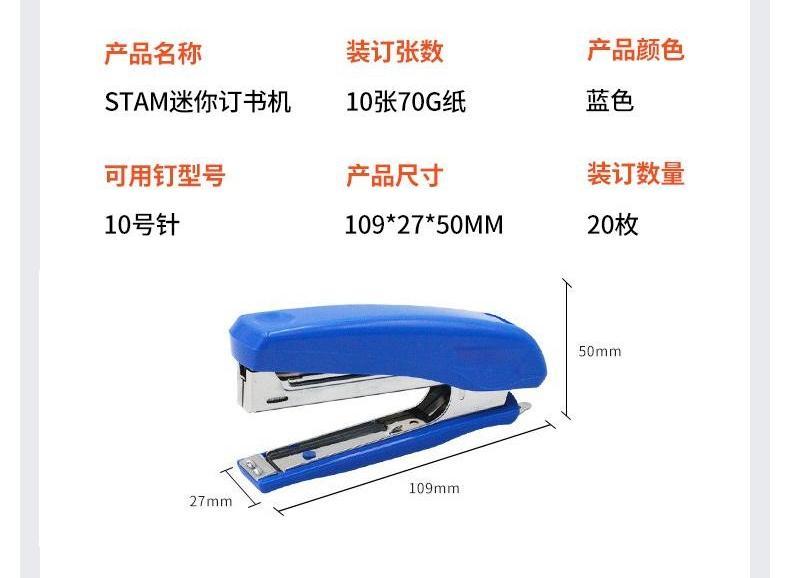 staples/史泰博的装订工具史泰博迷你订书机,蓝色10号针蓝色STAM1108单位:个