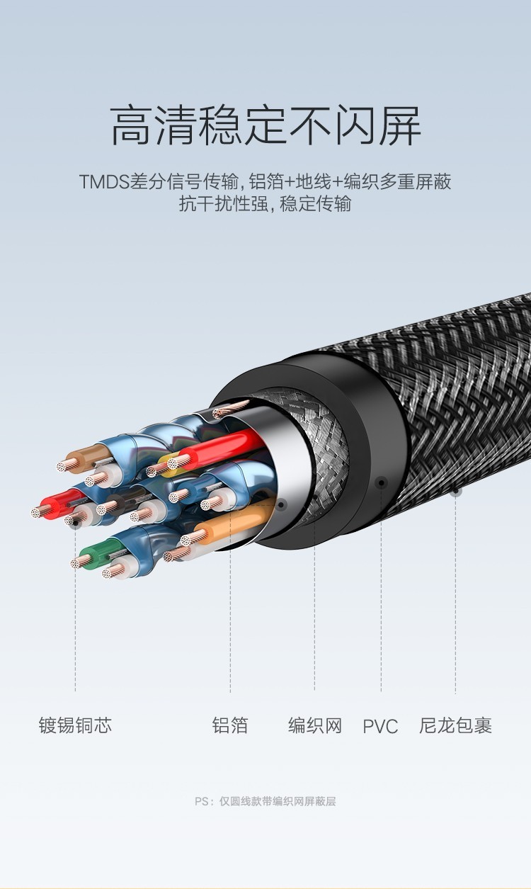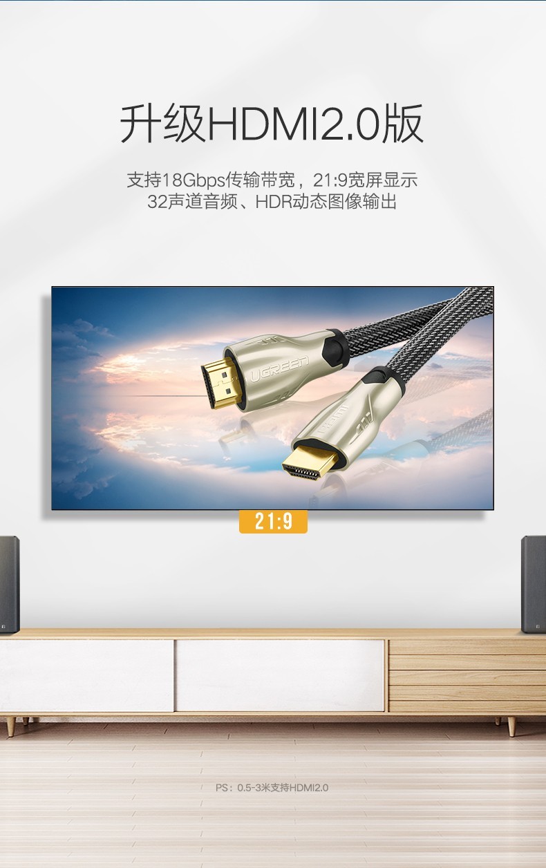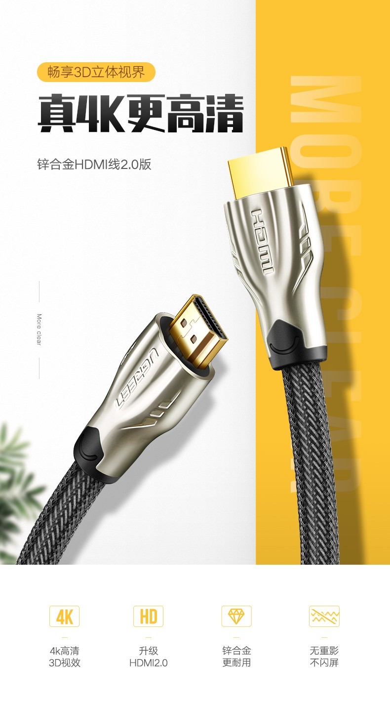 绿联 HDMI高清连接线, 绿黑款圆线 30AWG OD7.3MM 支持2K*4K,60HZ3米 单位:条 |