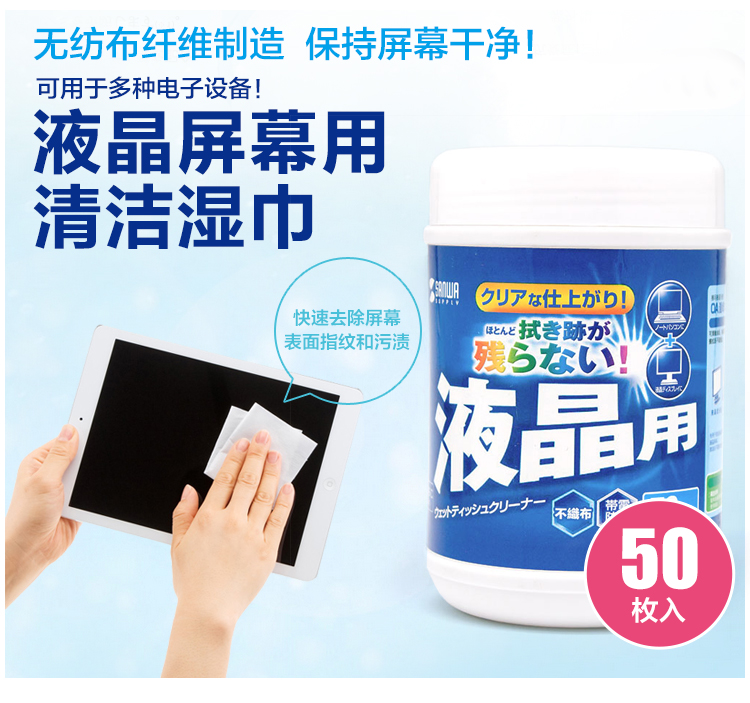 SANWA SUPPLY/山业的电脑清洁山业SANWASUPPLY液晶屏幕清洁湿纸巾50抽CD-WT4NS-C1个