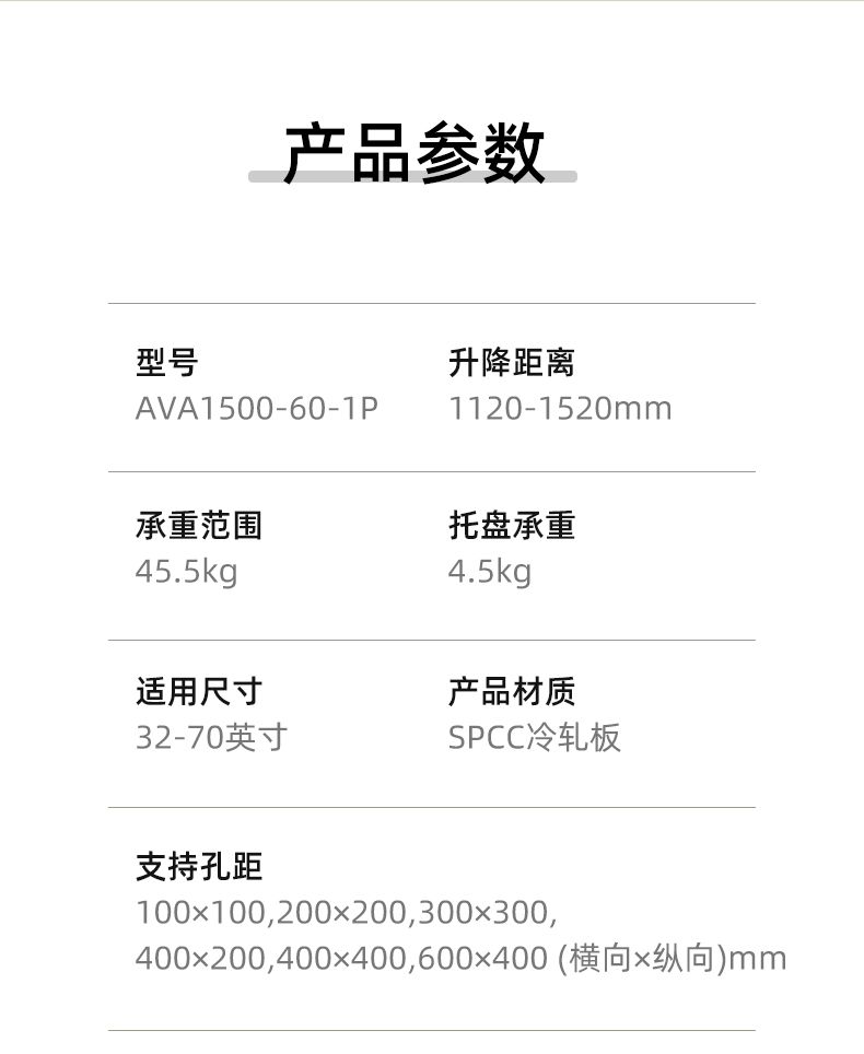 NB的电视机及配件NB一体机配套支架,AVA1500-60-1P适用于55、65英寸