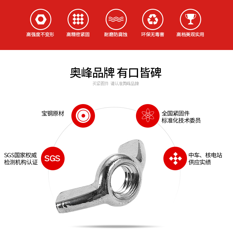 艾逊订货号:G1036856 原始型号:奥峰 DIN315蝶形螺母,M4-0.7,不锈钢304 品牌:AOFENG/奥峰 品牌所属地:中国