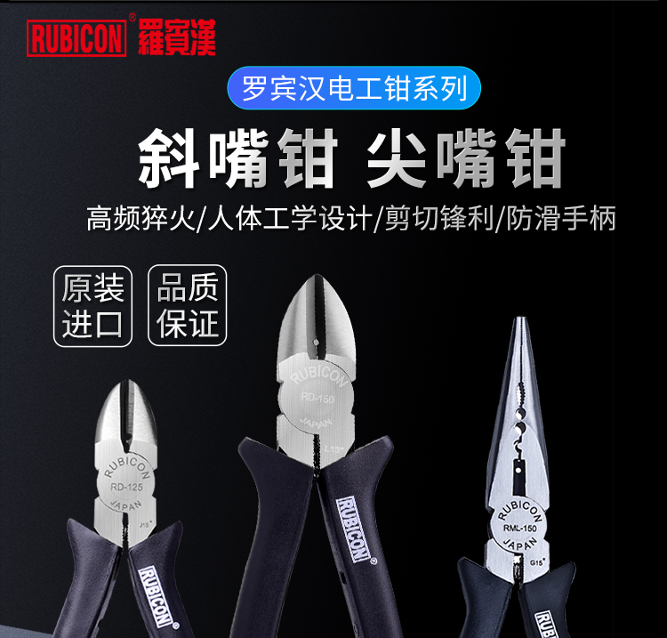 RUBICON/罗宾汉的电缆钳罗宾汉(RUBICON)进口电工钳斜嘴钳尖嘴钳钢丝钳老虎钳斜口钳尖头钳偏口钳子RD-1506英寸150mm剪线钳