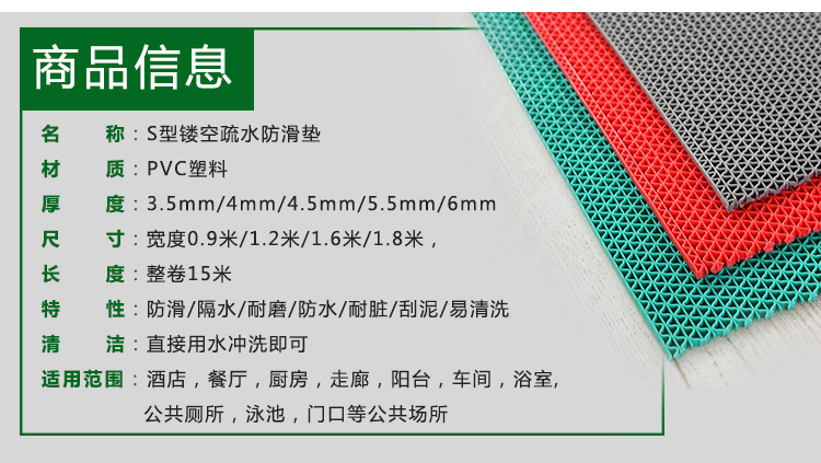 庄太太 红色1.2米宽×15米*4mm 牛津镂空防滑地垫游泳池洗手间地毯ZTT-9056 |