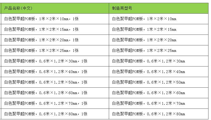 艾逊订货号:G1049474 原始型号:宇和 白色聚甲醛POM板,1米×2米×20mm 品牌:宇和 品牌所属地:中国