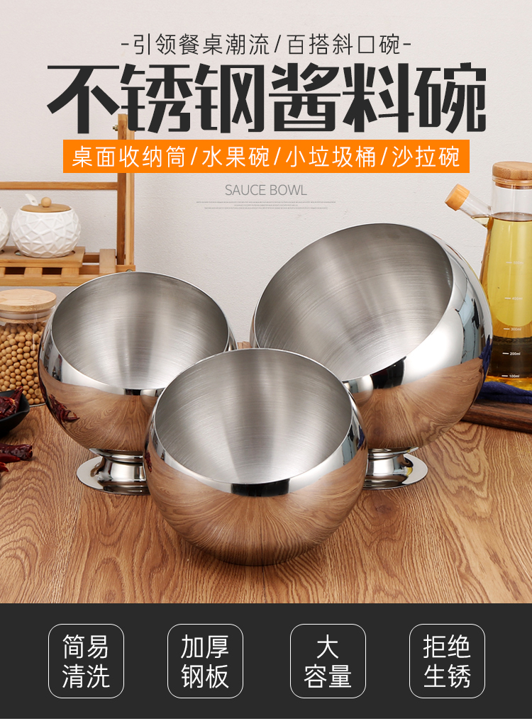 庄太太 金色22cm带底座 不锈钢桌面垃圾桶餐桌斜口碗KTV烟灰缸ZTT-9020 |