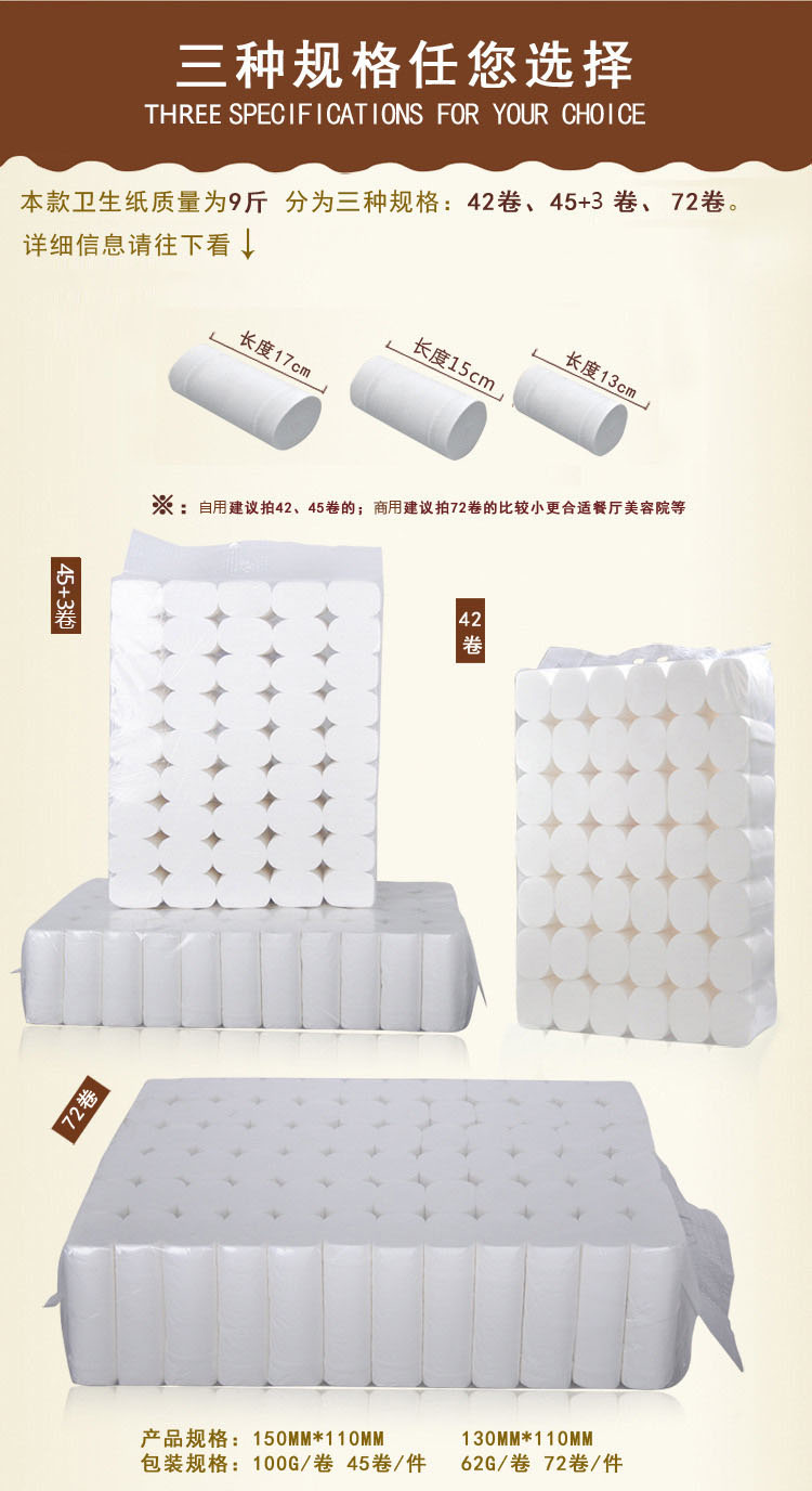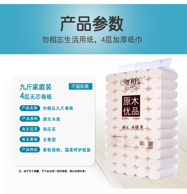 勿相忘的纸品湿巾勿相忘17cm长42卷/提卫生纸4层9斤妇婴卷筒纸巾商用厕纸WXW1